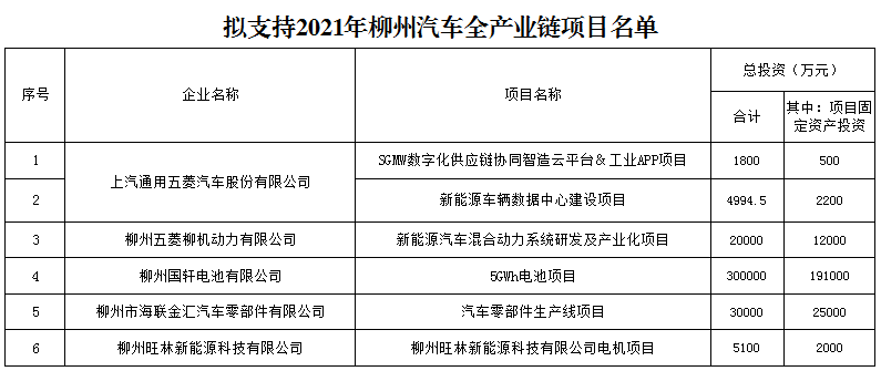 附件:擬支持2021年柳州汽車全產業(yè)鏈項目名單